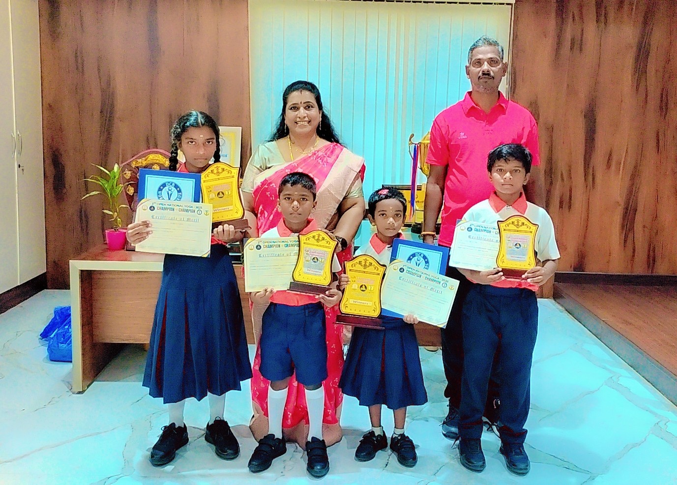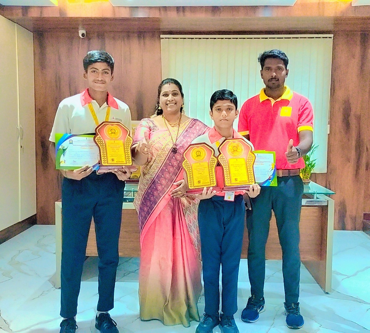 "We feel glad to share you the achievements of our Achariyans in the state-level sports celebration 2023 -2024 organized by Kreeda Bharati Tamil Nadu. The achievements of the students are truly commendable. Raja Yashwanth - Secured first place in yoga Rani Saranya sree- Secured Runner-up in Yoga Rani Niraimarhi - Secured Runner-up in Yoga. Raja Kamaleshwaran - Participated enthusiastically, his spirit and effort are just as important as the wins! Their hard work and dedication have paid off, and I'm sure they'll continue to make their mark in their respective fields. Congratulations to all the winners and participants. "