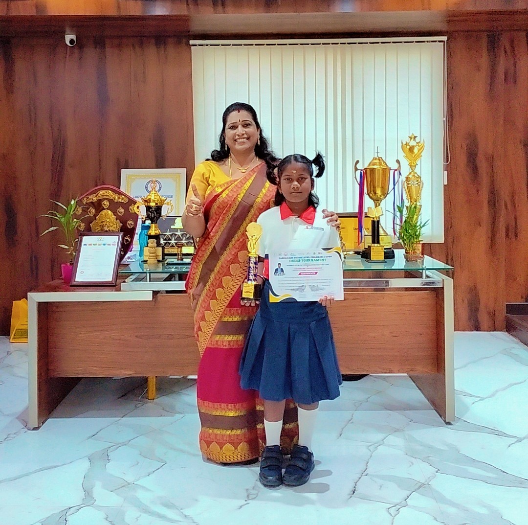 We are proud to share that Rani Rithika (Grade 4) participated in Tamil Nadu State Level Chess Tournament U-9 Girls Category, secured 4 out of 6 points and achieved 7th place. Congratulations!